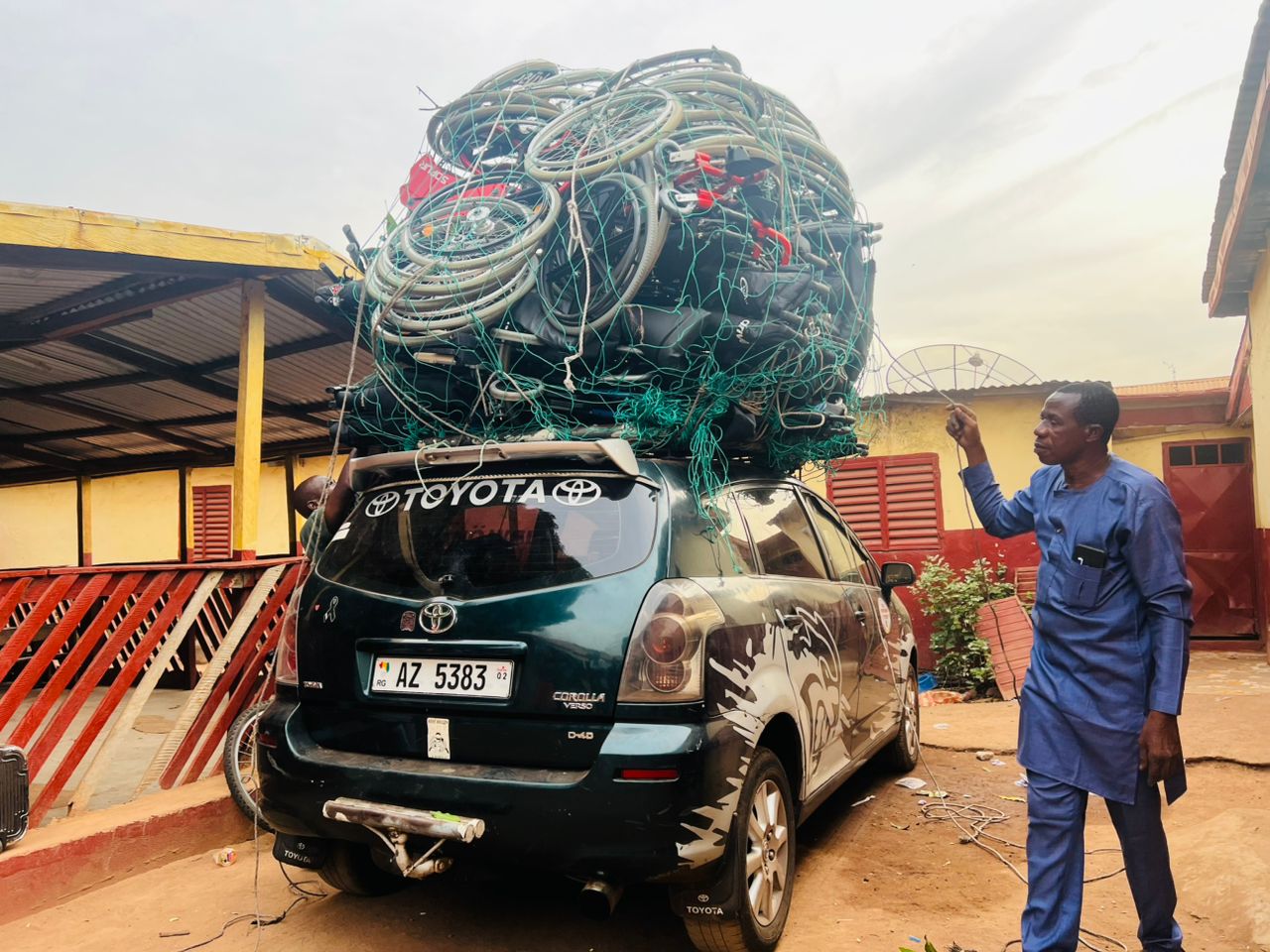 Novembre 2024. Deux membres du comité de La route à bout de bras, Elisabeth Zurbriggen, présidente de l’association et Yves Magat, trésorier, se sont rendus à leurs frais en Guinée pour assurer le suivi avec notre partenaire local ASPH. Pendant ce séjour, une distribution de fauteuils s’est faite à nouveau dans l’intérieur du pays à Pita. À Conakry des visites ont été effectuées auprès de l’institution FITIMA qui reçoit à la journée des enfants fortement handicapés. Une collaboration a pu être entamée pour fournir des fauteuils roulants à certains enfants. Une rencontre a également été organisée avec une deuxième équipe de football pour amputés. Des béquilles et des chaussures de sport leur ont été distribuées.