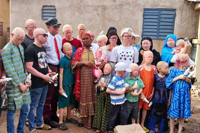 3 Décembre 2025. A l’occasion de la distribution de fauteuils roulants à Kankan pour la Journée internationale des personnes handicapées, l’association La route à bout de bras a remis un carton de lunettes de soleil à l’Association des personnes atteintes d’albinisme. Les personnes albinos souffrent particulièrement du soleil, tant au niveau des yeux que de la peau. Le président cette association, M. Antoine Tolno, a remercié vivement pour cette donation et il a évoqué « le besoin urgent de crème solaire, de chapeaux et de vêtements amples et protecteurs du soleil ». En plus, les écoliers albinos rencontrent d’énormes difficultés à écrire dans les cahiers disponibles en Guinée, car les lignes sont trop fines et peu visibles pour eux. L’association cherche à obtenir « des cahiers à lignes plus épaisses, des stylos bien visibles, ainsi que de petites ardoises effaçables, ce serait d’un immense secours. »